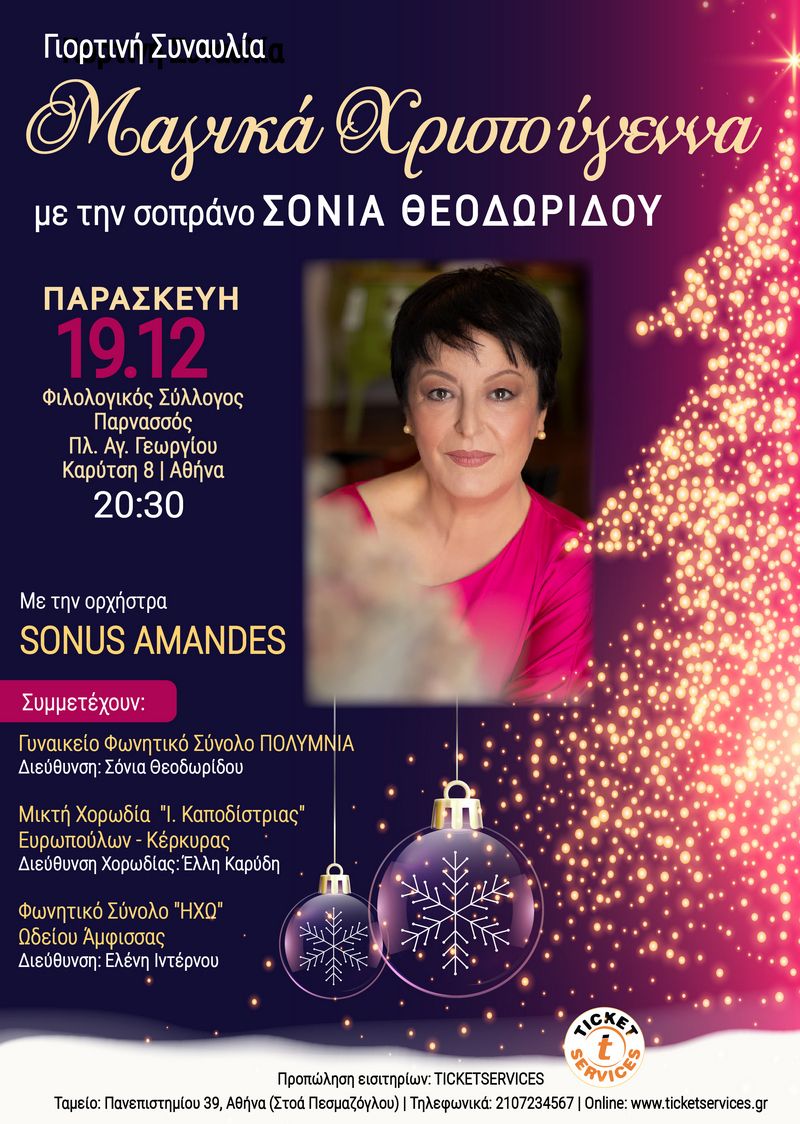 As the holiday season draws near, Athens prepares to welcome a truly enchanting musical celebration. On Friday, December 19, 2025, the historic Parnassos Literary Society will host an unforgettable Christmas concert featuring internationally acclaimed soprano Sonia Theodoridou. If you're looking to immerse yourself in the warmth, wonder, and musical spirit of the holidays, this is the event to mark on your calendar.
